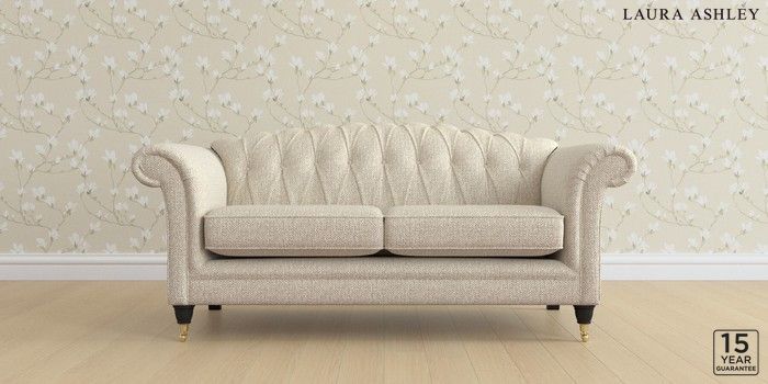 6.12.13 Buy Gloucester Button Back by Laura Ashley 3 Seater Small Sofa Borwick Natural Low Brass Castor - Black from the Next UK online shop Click here to use our accessible website