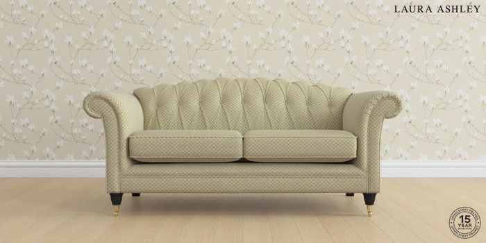 6.12.1 Buy Gloucester Button Back by Laura Ashley 3 Seater Small Sofa Chequers Hedgerow Green Low Brass Castor - Black from the Next UK online shop Click here to use our accessible website