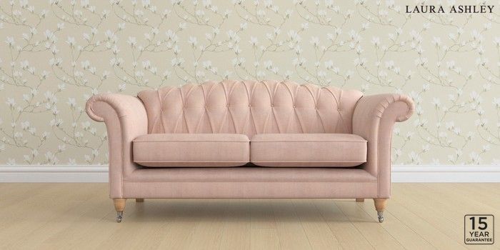 6.12.13 Buy Gloucester Button Back by Laura Ashley 3 Seater Small Sofa Edwin Chenille Blush Pink Low Chrome Castor - Light Oak from the Next UK online shop Click here to use our accessible website