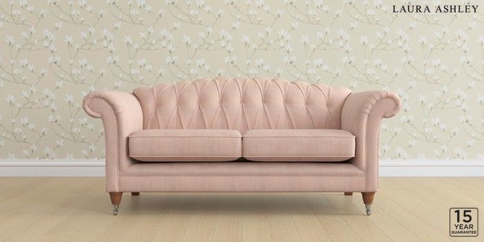 6.12.13 Buy Gloucester Button Back by Laura Ashley 3 Seater Small Sofa Edwin Chenille Blush Pink Low Chrome Castor - Teak from the Next UK online shop Click here to use our accessible website