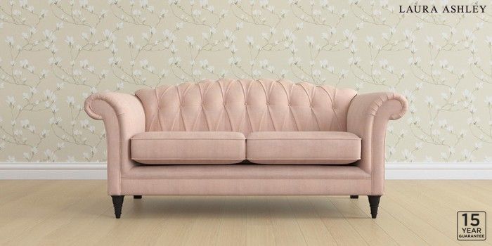 6.12.13 Buy Gloucester Button Back by Laura Ashley 3 Seater Small Sofa Edwin Chenille Blush Pink Low Turned - Black from the Next UK online shop Click here to use our accessible website