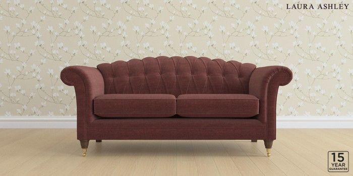6.12.13 Buy Gloucester Button Back by Laura Ashley 3 Seater Small Sofa Edwin Chenille Burgundy Red Low Brass Castor - Chestnut from the Next UK online shop Click here to use our accessible website