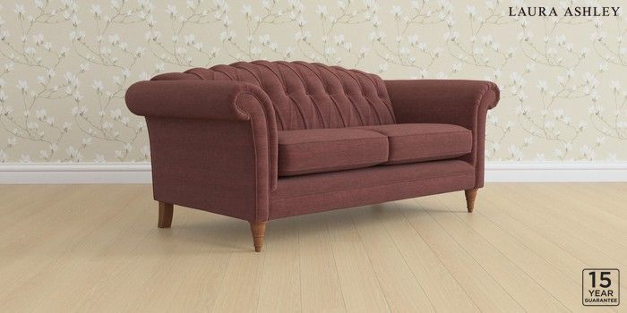 6.12.13 Buy Gloucester Button Back by Laura Ashley 3 Seater Small Sofa Edwin Chenille Burgundy Red Low Turned - Teak from the Next UK online shop Click here to use our accessible website