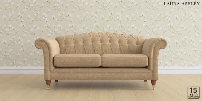 6.12.1 Buy Gloucester Button Back by Laura Ashley 3 Seater Small Sofa Edwin Chenille Gold Natural Low Brass Castor - Teak from the Next UK online shop Click here to use our accessible website