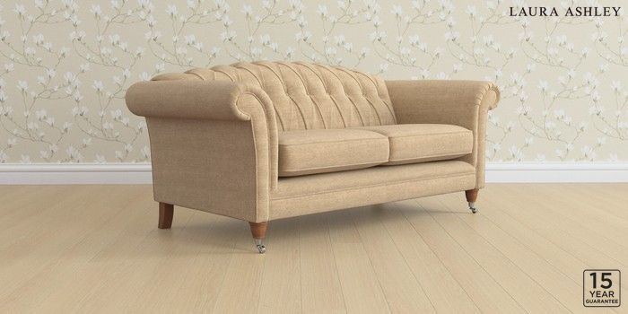 6.12.1 Buy Gloucester Button Back by Laura Ashley 3 Seater Small Sofa Edwin Chenille Gold Natural Low Chrome Castor - Teak from the Next UK online shop Click here to use our accessible website
