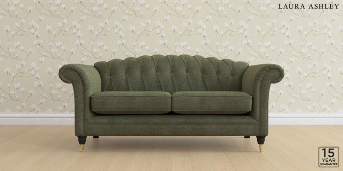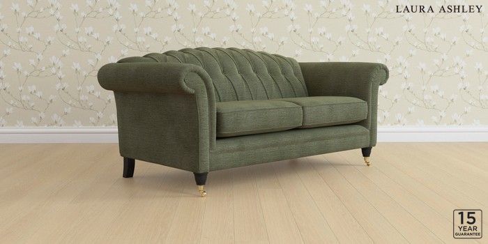 6.12.13 Buy Gloucester Button Back by Laura Ashley 3 Seater Small Sofa Edwin Chenille Hedgerow Green Low Brass Castor - Black from the Next UK online shop Click here to use our accessible website