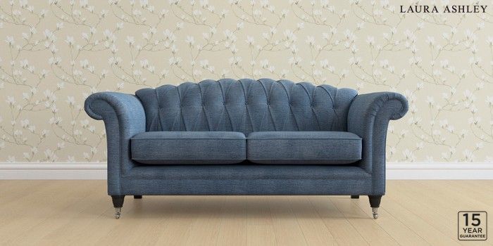6.12.13 Buy Gloucester Button Back by Laura Ashley 3 Seater Small Sofa Edwin Chenille Seaspray Blue Low Chrome Castor - Black from the Next UK online shop Click here to use our accessible website