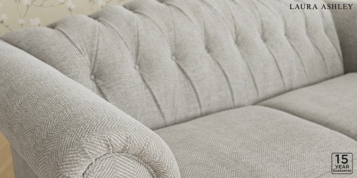 6.12.1 Buy Gloucester Button Back by Laura Ashley 3 Seater Small Sofa Edwin Chenille Silver Grey Low Chrome Castor - Light Oak from the Next UK online shop Click here to use our accessible website