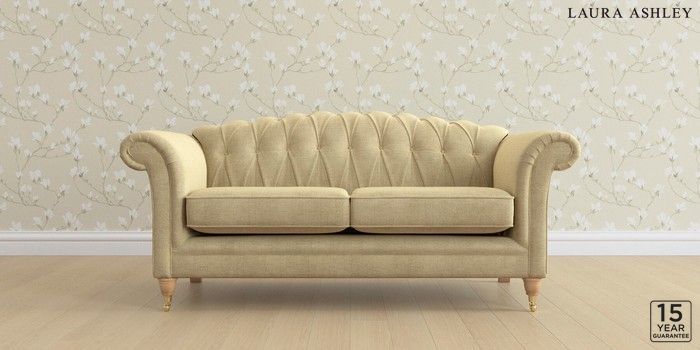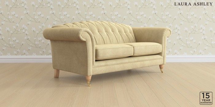 6.12.13 Buy Gloucester Button Back by Laura Ashley 3 Seater Small Sofa Edwin Chenille Truffle Natural Low Brass Castor - Light Oak from the Next UK online shop Click here to use our accessible website