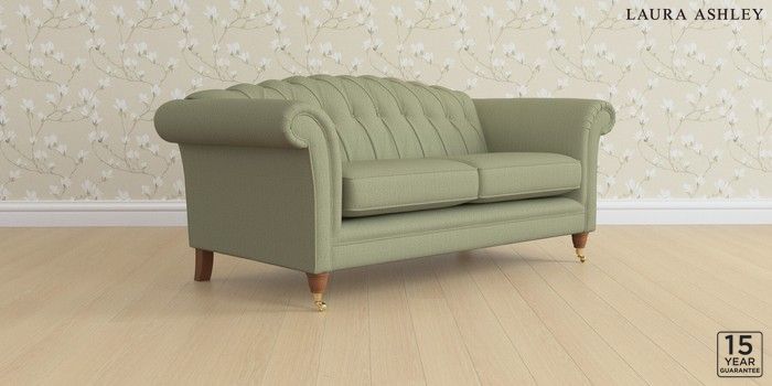 6.12.1 Buy Gloucester Button Back by Laura Ashley 3 Seater Small Sofa Edwin Herringbone Hedgerow Green Low Brass Castor - Teak from the Next UK online shop Click here to use our accessible website