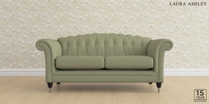 6.12.1 Buy Gloucester Button Back by Laura Ashley 3 Seater Small Sofa Edwin Herringbone Hedgerow Green Low Chrome Castor - Black from the Next UK online shop Click here to use our accessible website