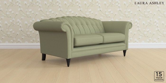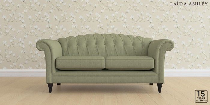 6.12.1 Buy Gloucester Button Back by Laura Ashley 3 Seater Small Sofa Edwin Herringbone Hedgerow Green Low Turned - Black from the Next UK online shop Click here to use our accessible website