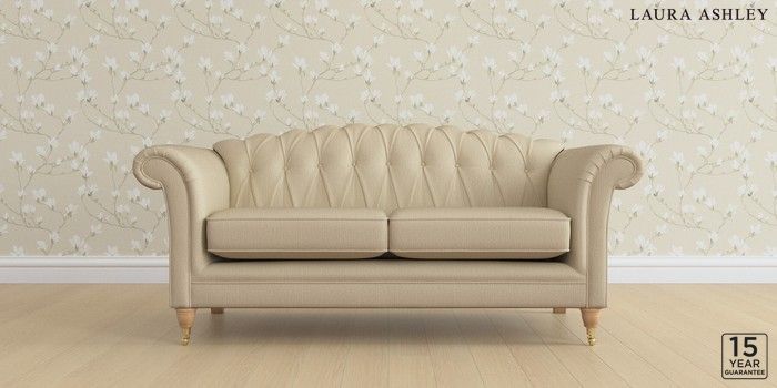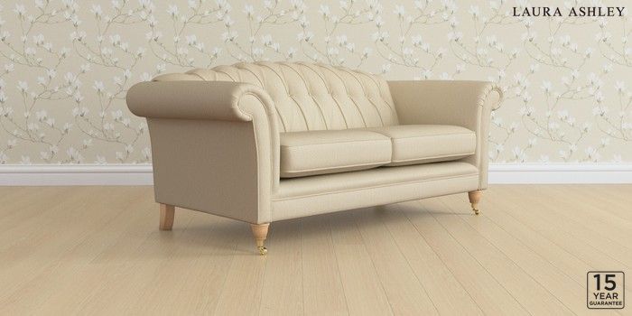 6.12.1 Buy Gloucester Button Back by Laura Ashley 3 Seater Small Sofa Edwin Herringbone Natural Low Brass Castor - Light Oak from the Next UK online shop Click here to use our accessible website
