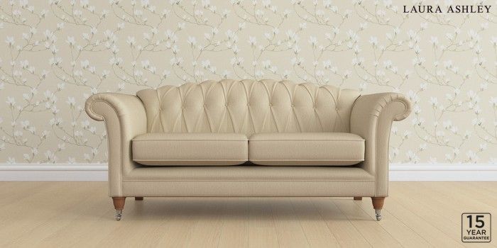 6.12.1 Buy Gloucester Button Back by Laura Ashley 3 Seater Small Sofa Edwin Herringbone Natural Low Chrome Castor - Teak from the Next UK online shop Click here to use our accessible website