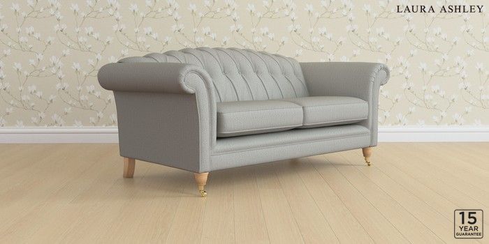 6.12.1 Buy Gloucester Button Back by Laura Ashley 3 Seater Small Sofa Edwin Herringbone Pale Steel Grey Low Brass Castor - Light Oak from the Next UK online shop Click here to use our accessible website
