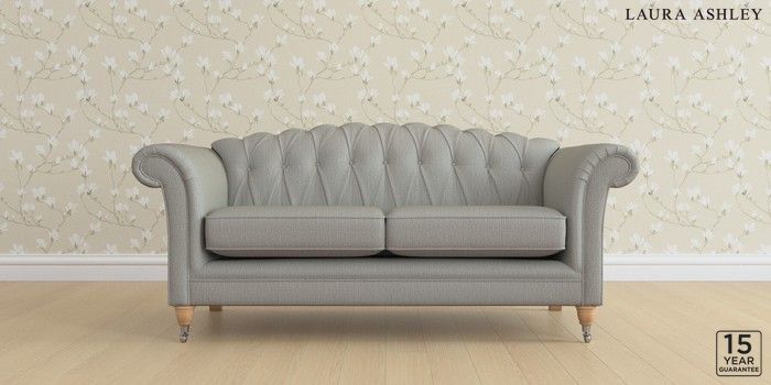 6.12.1 Buy Gloucester Button Back by Laura Ashley 3 Seater Small Sofa Edwin Herringbone Pale Steel Grey Low Chrome Castor - Light Oak from the Next UK online shop Click here to use our accessible website