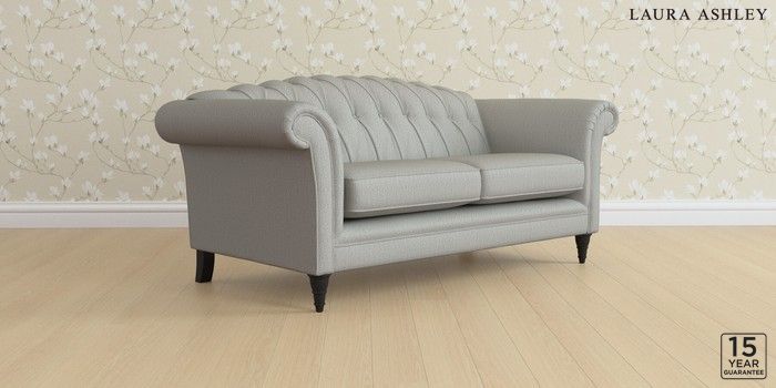 6.12.1 Buy Gloucester Button Back by Laura Ashley 3 Seater Small Sofa Edwin Herringbone Pale Steel Grey Low Turned - Black from the Next UK online shop Click here to use our accessible website