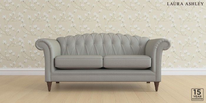 6.12.1 Buy Gloucester Button Back by Laura Ashley 3 Seater Small Sofa Edwin Herringbone Pale Steel Grey Low Turned - Chestnut from the Next UK online shop Click here to use our accessible website
