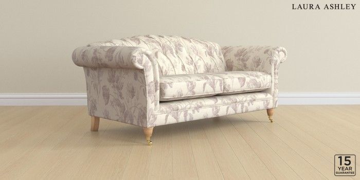6.12.1 Buy Gloucester Button Back by Laura Ashley 3 Seater Small Sofa Gosford Weave Dusky Plum Purple Low Brass Castor - Light Oak from the Next UK online shop Click here to use our accessible website