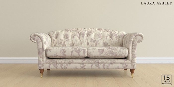 6.12.1 Buy Gloucester Button Back by Laura Ashley 3 Seater Small Sofa Gosford Weave Dusky Plum Purple Low Brass Castor - Teak from the Next UK online shop Click here to use our accessible website