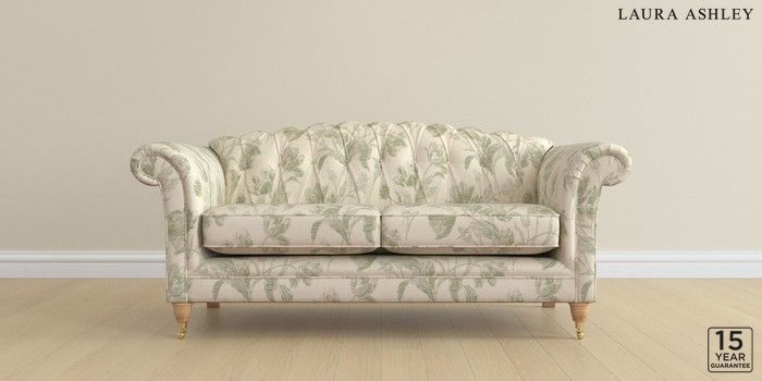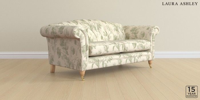 6.12.1 Buy Gloucester Button Back by Laura Ashley 3 Seater Small Sofa Gosford Weave Sage Green Low Brass Castor - Light Oak from the Next UK online shop Click here to use our accessible website