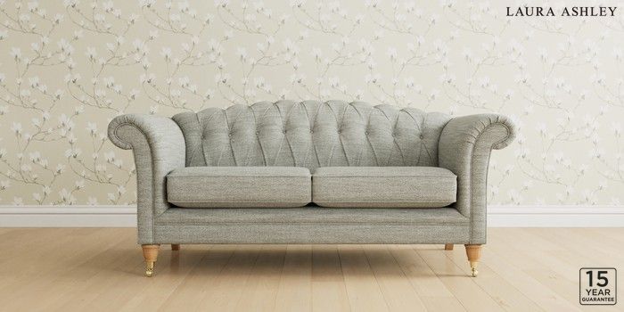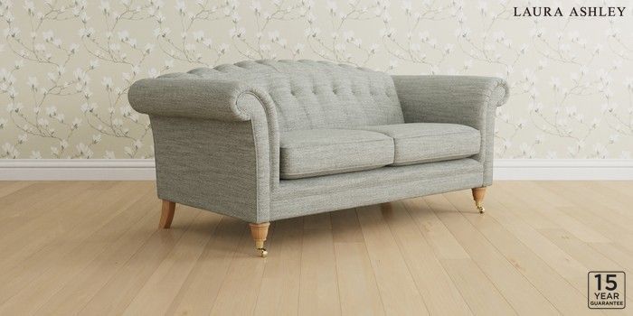 6.12.13 Buy Gloucester Button Back by Laura Ashley 3 Seater Small Sofa Harley Dove Grey Low Brass Castor - Light Oak from the Next UK online shop Click here to use our accessible website