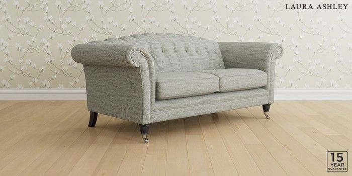 6.12.13 Buy Gloucester Button Back by Laura Ashley 3 Seater Small Sofa Harley Dove Grey Low Chrome Castor - Black from the Next UK online shop Click here to use our accessible website