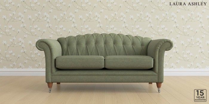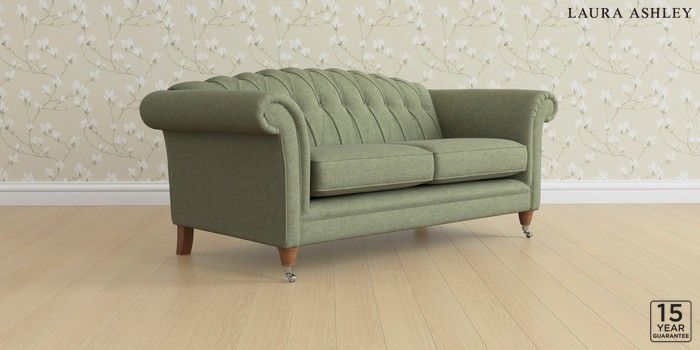 6.12.13 Buy Gloucester Button Back by Laura Ashley 3 Seater Small Sofa Harley Moss Green Low Chrome Castor - Teak from the Next UK online shop Click here to use our accessible website
