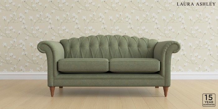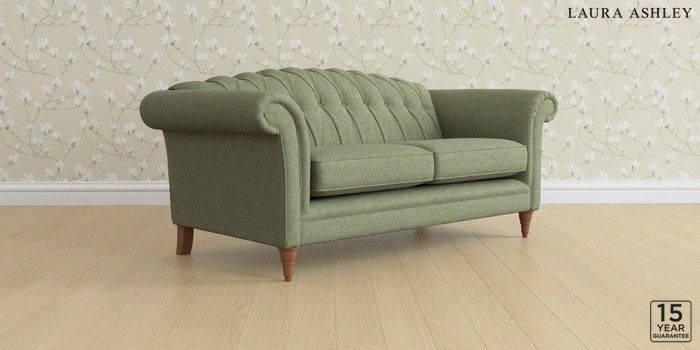 6.12.13 Buy Gloucester Button Back by Laura Ashley 3 Seater Small Sofa Harley Moss Green Low Turned - Teak from the Next UK online shop Click here to use our accessible website