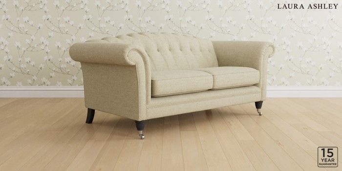6.12.13 Buy Gloucester Button Back by Laura Ashley 3 Seater Small Sofa Harley Natural Low Chrome Castor - Black from the Next UK online shop Click here to use our accessible website