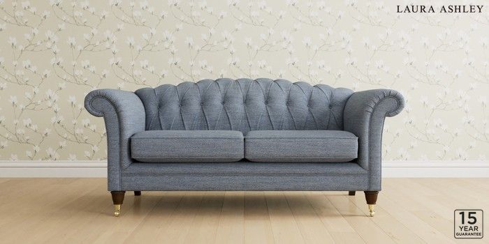 6.12.1 Buy Gloucester Button Back by Laura Ashley 3 Seater Small Sofa Harley Seaspray Blue Low Brass Castor - Chestnut from the Next UK online shop Click here to use our accessible website