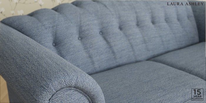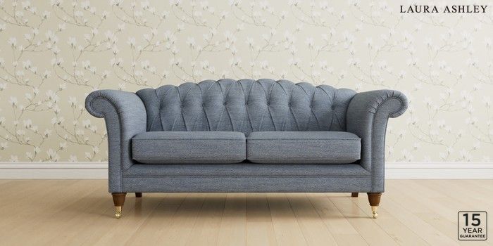 6.12.1 Buy Gloucester Button Back by Laura Ashley 3 Seater Small Sofa Harley Seaspray Blue Low Brass Castor - Teak from the Next UK online shop Click here to use our accessible website