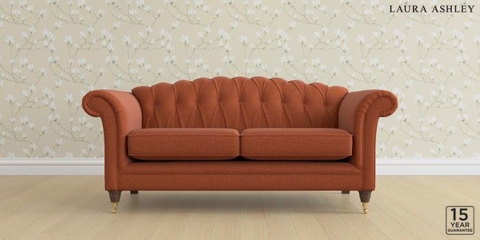 6.12.1 Buy Gloucester Button Back by Laura Ashley 3 Seater Small Sofa Harley Terracotta Orange Low Brass Castor - Chestnut from the Next UK online shop Click here to use our accessible website