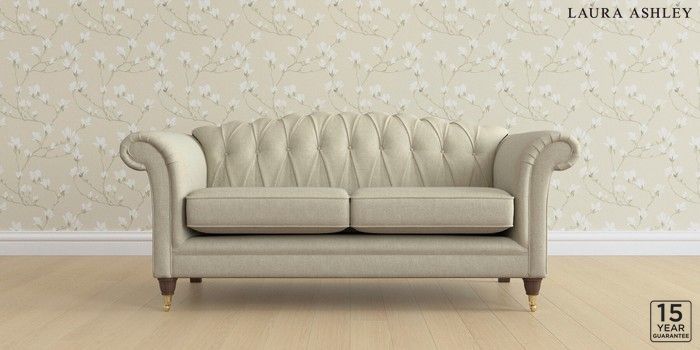 6.12.13 Buy Gloucester Button Back by Laura Ashley 3 Seater Small Sofa Kinsham Natural Low Brass Castor - Chestnut from the Next UK online shop Click here to use our accessible website