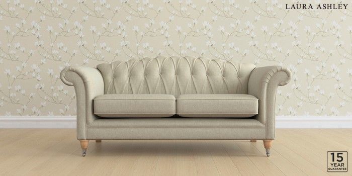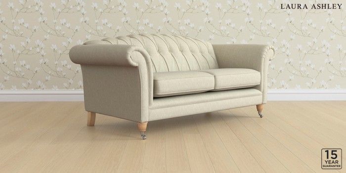6.12.13 Buy Gloucester Button Back by Laura Ashley 3 Seater Small Sofa Kinsham Natural Low Chrome Castor - Light Oak from the Next UK online shop Click here to use our accessible website
