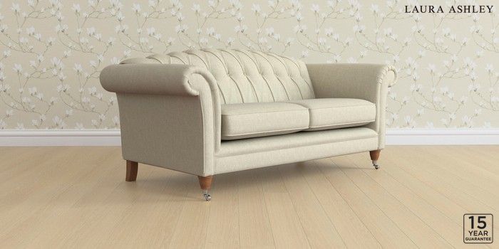 6.12.13 Buy Gloucester Button Back by Laura Ashley 3 Seater Small Sofa Kinsham Natural Low Chrome Castor - Teak from the Next UK online shop Click here to use our accessible website