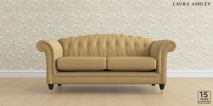 6.12.13 Buy Gloucester Button Back by Laura Ashley 3 Seater Small Sofa Kinsham Ochre Yellow Low Brass Castor - Black from the Next UK online shop Click here to use our accessible website