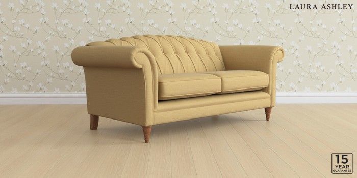 6.12.13 Buy Gloucester Button Back by Laura Ashley 3 Seater Small Sofa Kinsham Ochre Yellow Low Turned - Teak from the Next UK online shop Click here to use our accessible website