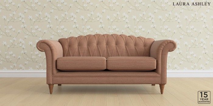 6.12.1 Buy Gloucester Button Back by Laura Ashley 3 Seater Small Sofa Kinsham Rust Orange Low Turned - Teak from the Next UK online shop Click here to use our accessible website