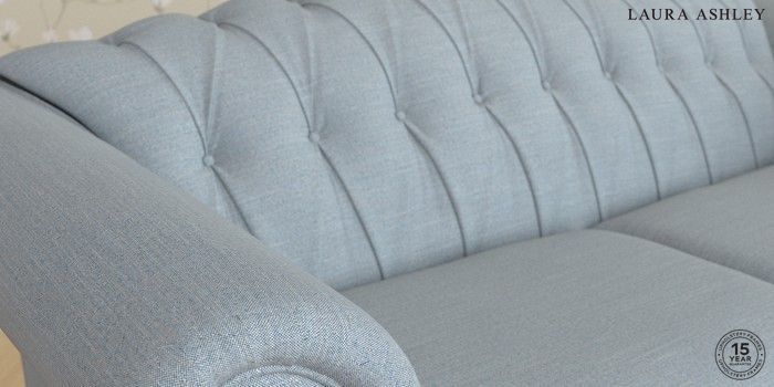 6.12.1 Buy Gloucester Button Back by Laura Ashley 3 Seater Small Sofa Kinsham Seaspray Blue Low Chrome Castor - Chestnut from the Next UK online shop Click here to use our accessible website