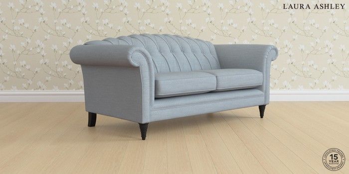 6.12.1 Buy Gloucester Button Back by Laura Ashley 3 Seater Small Sofa Kinsham Seaspray Blue Low Turned - Black from the Next UK online shop Click here to use our accessible website