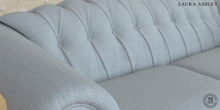 6.12.1 Buy Gloucester Button Back by Laura Ashley 3 Seater Small Sofa Kinsham Seaspray Blue Low Turned - Teak from the Next UK online shop Click here to use our accessible website