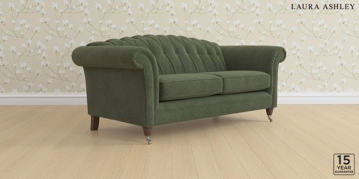 6.12.13 Buy Gloucester Button Back by Laura Ashley 3 Seater Small Sofa Lundar Chenille Ivy Green Low Chrome Castor - Chestnut from the Next UK online shop Click here to use our accessible website