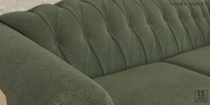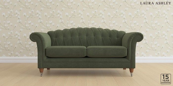 6.12.13 Buy Gloucester Button Back by Laura Ashley 3 Seater Small Sofa Lundar Chenille Ivy Green Low Chrome Castor - Teak from the Next UK online shop Click here to use our accessible website