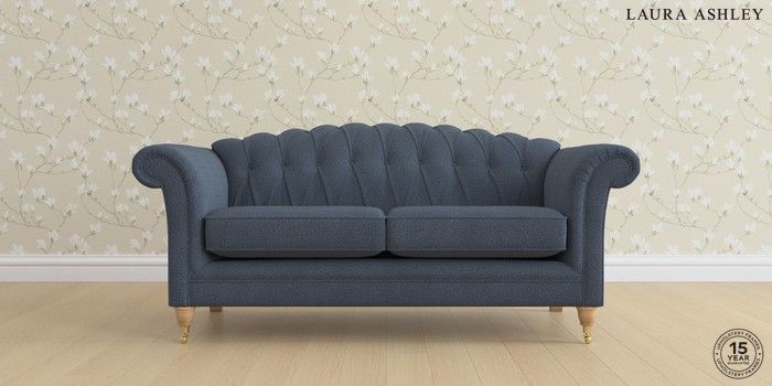 6.12.1 Buy Gloucester Button Back by Laura Ashley 3 Seater Small Sofa Lundar Chenille Navy Blue Low Brass Castor - Light Oak from the Next UK online shop Click here to use our accessible website