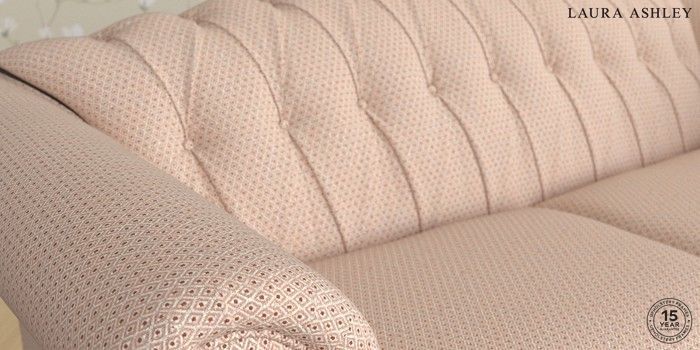 6.12.1 Buy Gloucester Button Back by Laura Ashley 3 Seater Small Sofa Melbreak Geo Chalk Pink Low Brass Castor - Chestnut from the Next UK online shop Click here to use our accessible website