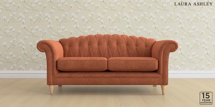 6.12.1 Buy Gloucester Button Back by Laura Ashley 3 Seater Small Sofa Nantmor Rust Orange Low Turned - Light Oak from the Next UK online shop Click here to use our accessible website