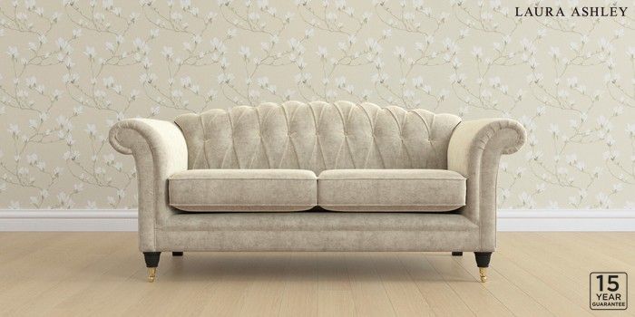 6.12.13 Buy Gloucester Button Back by Laura Ashley 3 Seater Small Sofa Nantmor Truffle Natural Low Brass Castor - Black from the Next UK online shop Click here to use our accessible website
