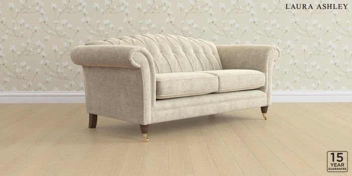 6.12.13 Buy Gloucester Button Back by Laura Ashley 3 Seater Small Sofa Nantmor Truffle Natural Low Brass Castor - Chestnut from the Next UK online shop Click here to use our accessible website