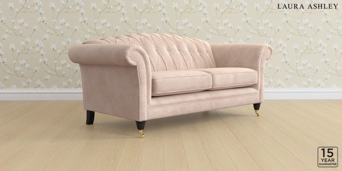 6.12.13 Buy Gloucester Button Back by Laura Ashley 3 Seater Small Sofa Orla Chalk Pink Low Brass Castor - Black from the Next UK online shop Click here to use our accessible website